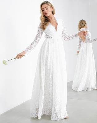 Asos Edition Penelope V Neck Lace Wedding Dress With Open Back Asos